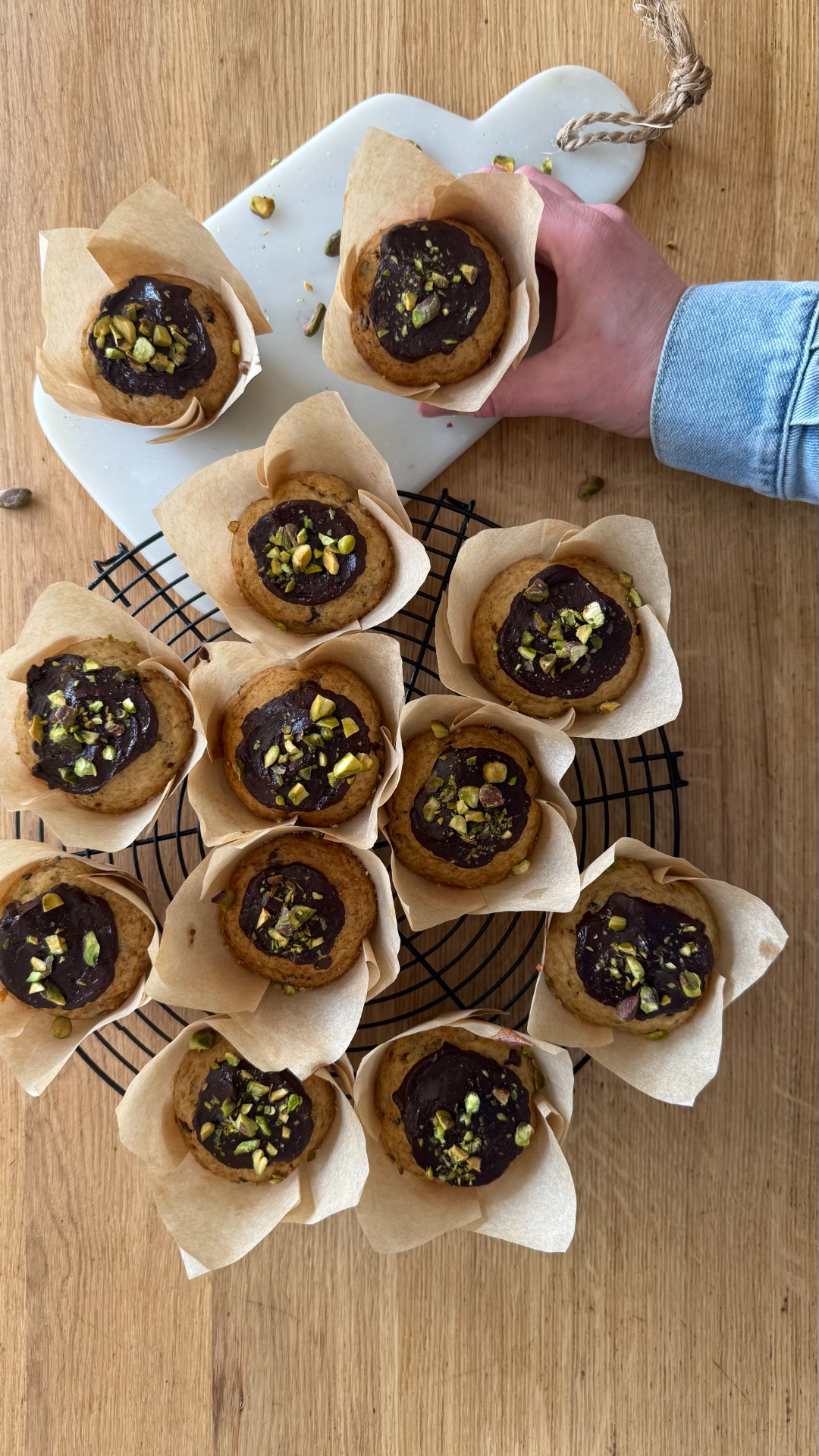 Muffins met chocolade en pistache