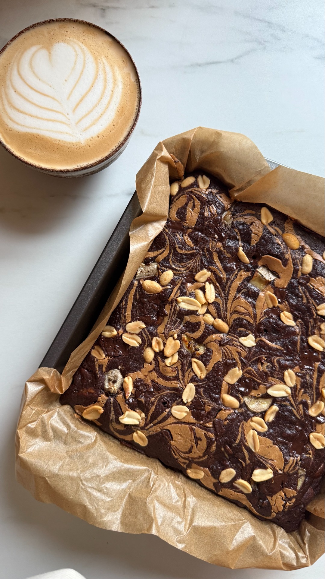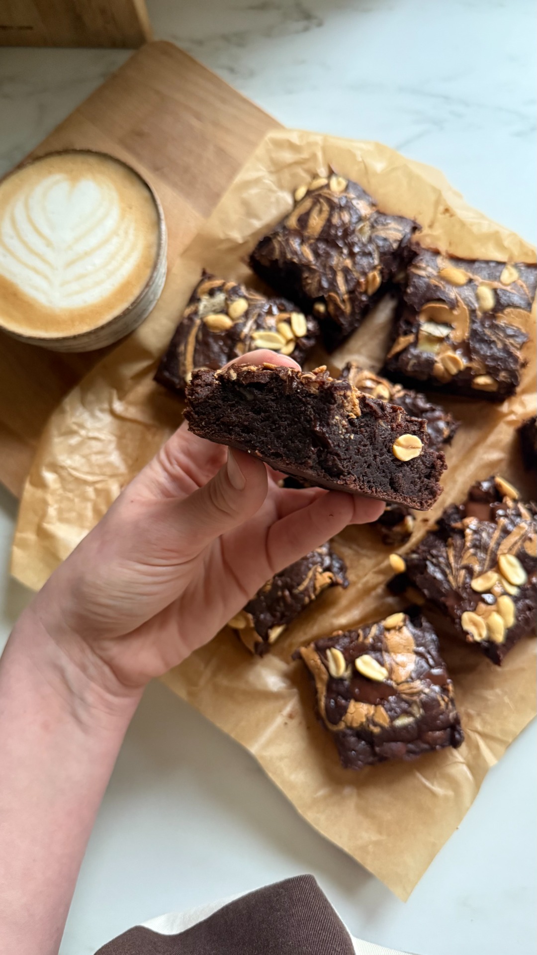 Brownie en pinda, match made in heaven. Fudgy brownie level 1000